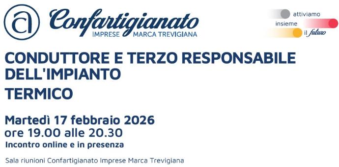 E’ fissato per il prossimo 17 febbraio dalle 19.00 alle 20.30 l’incontro dedicato alla disamina dei ruoli del terzo responsabile e del conduttore dell’impianto termico.
